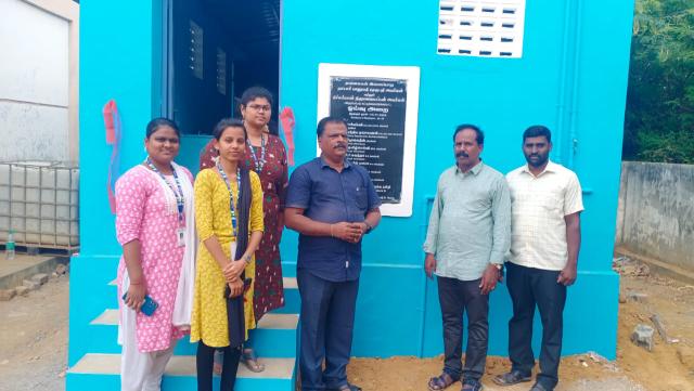 The construction project for toilets in Government Higher Secondary School, located in Sernthamangalam, Tirunelveli District, has been successfully completed. We have provided a total of five toilets exclusively for the 392 girl students.